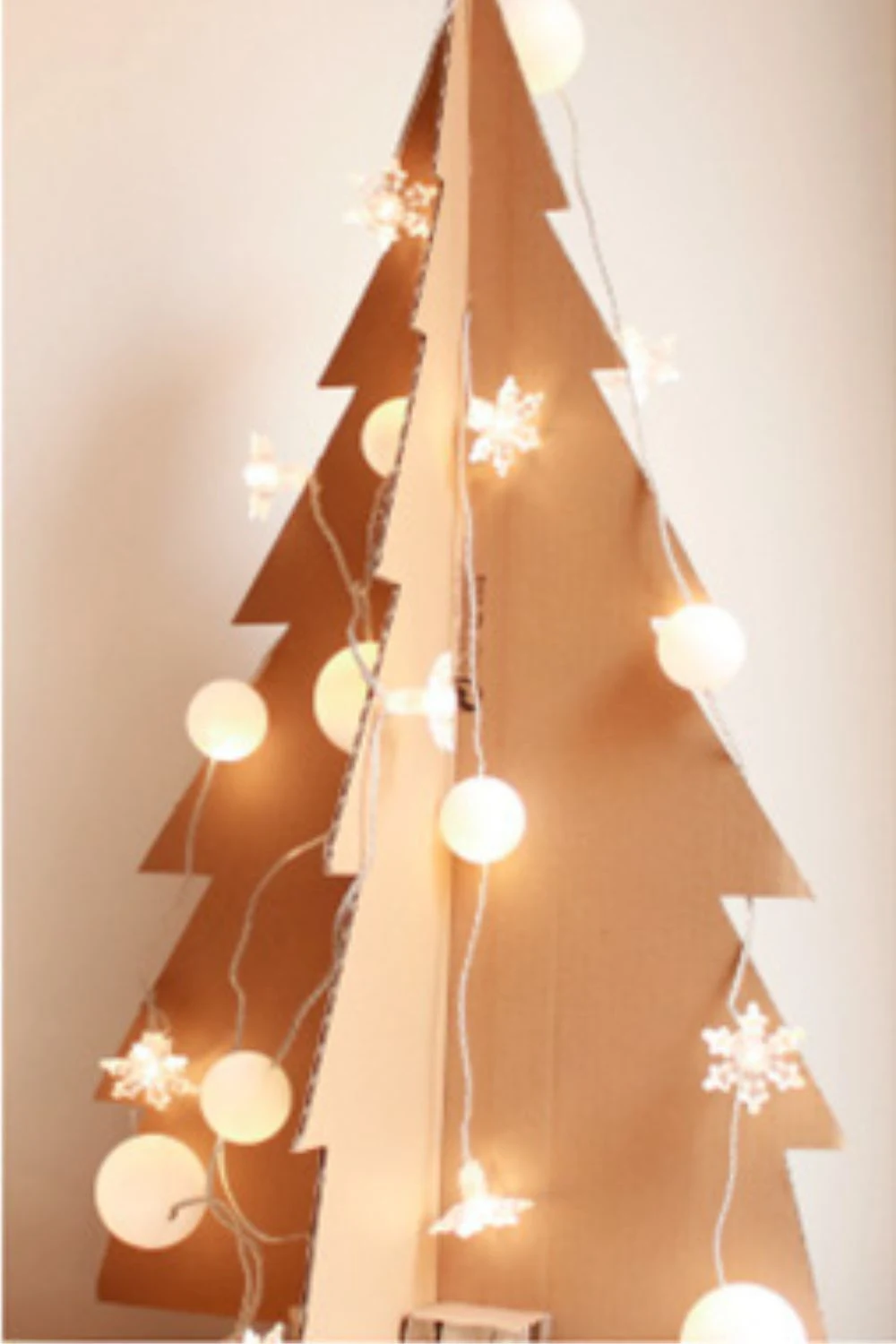 For a minimalist or eco-friendly approach, a cardboard Christmas tree is a creative alternative to a traditional one.
