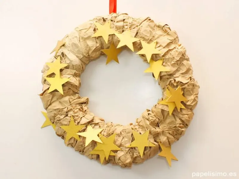 A cardboard wreath is a sustainable alternative to traditional greenery.