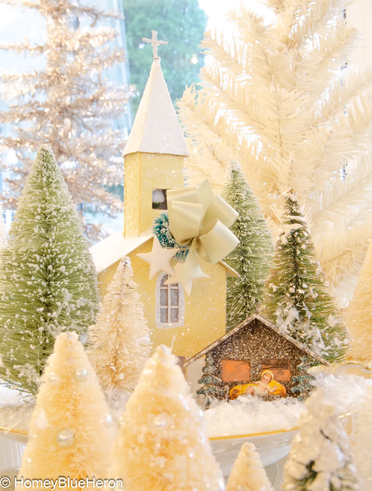 A cardboard Christmas village can become a charming centerpiece or mantel display.