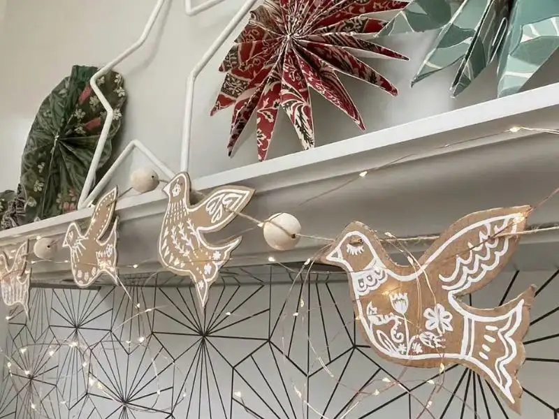 Cardboard garlands are easy to make and perfect for decorating walls, staircases, or mantels.