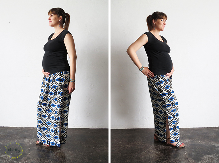 If you aren’t pregnant, you can also sew yourself a regular skirt following this tutorial. The only thing you will need to change is reducing the size of the belt.