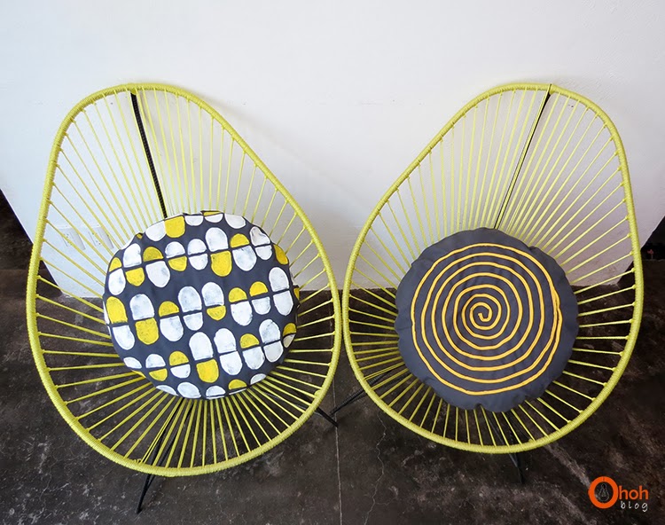 Great pillows! Always have to love the trusty potato print. But what about those yellow chairs? Where'd they come from, and how are they made?