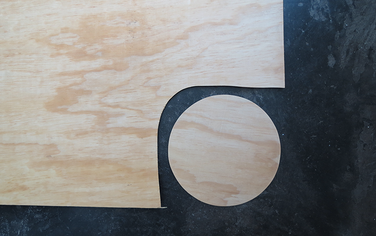 Corta un círculo del mismo tamaño que el fondo de la cubeta, lija y barniza lo. Después, pega lo sobre la cubeta.