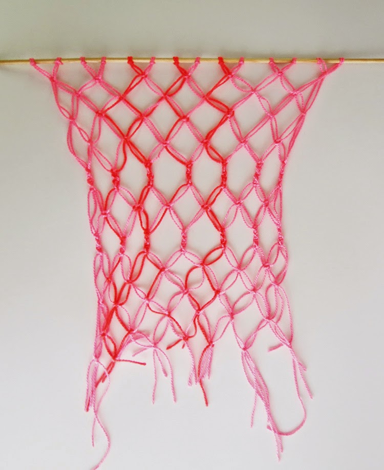 Después de unos nudos, tendras eso. El macramé debe tener más o menos el tamaño de tu cojin.